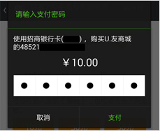 3、在弹出的支付界面中,通过微信支付进行付款,请您选择银行卡或绑定新的银行卡,输入密码后,确认后点击"支付"按钮。